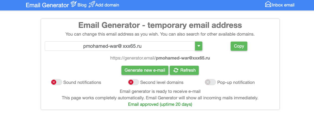 Unlike some disposable email generators, . It offers you to use a real gmail email address. Create free unlimited temporary mails to receive emails from any site. Use email fake to generate temporary emails. Select any one domain (@sharklasers.com, @guerrillamail.info, @ .